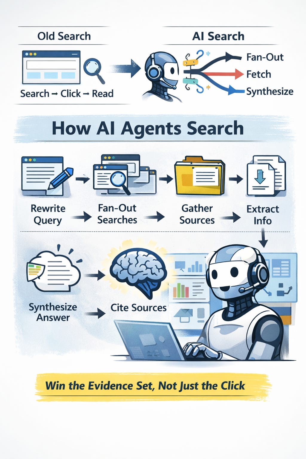That changes everything: now you’re not competing for a click; you’re competing to be selected into the evidence set.