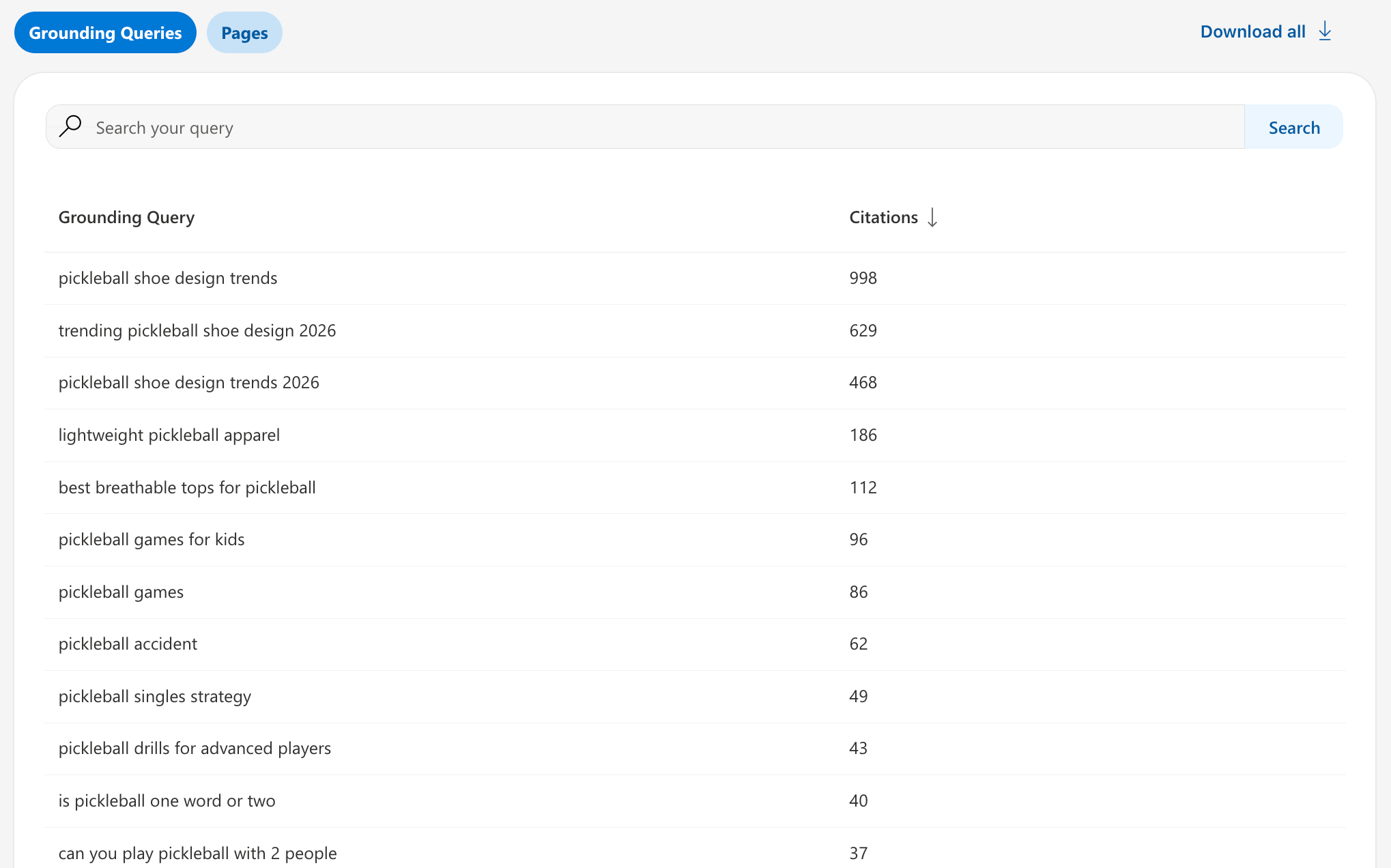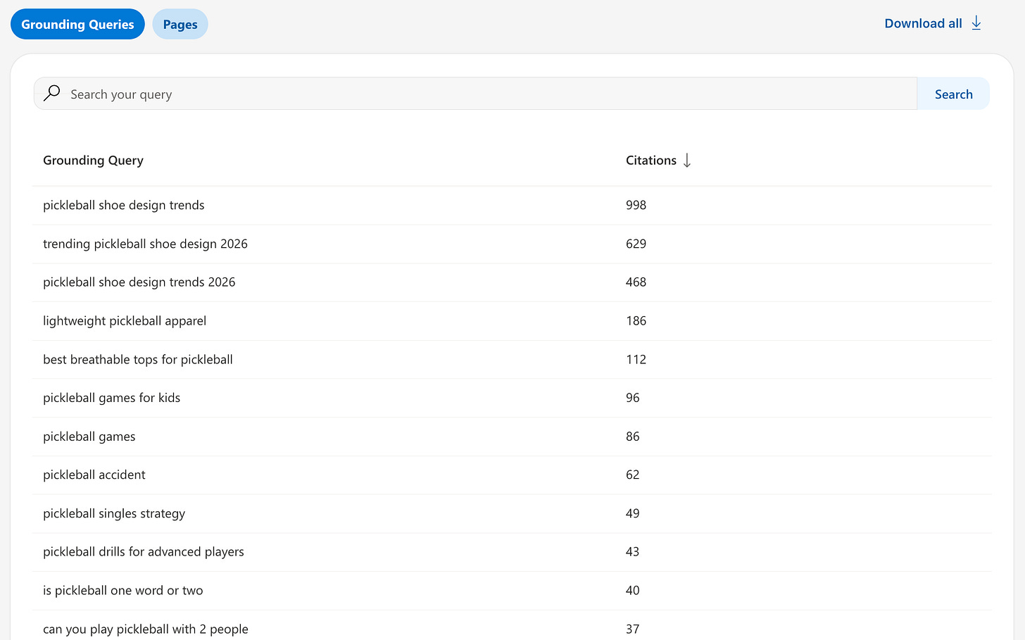 The result is thousands of AI citations across a wide range of pickleball‑related questions—not just about shoes, but about the sport’s rules, safety, and culture as well.