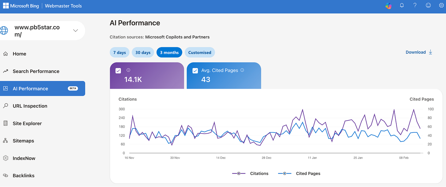 In February 2026, Bing rolled out a new AI Performance report inside Bing Webmaster Tools. It shows how often your content is cited inside Bing’s AI experiences and which grounding queries the AI uses to find you. (blogs.bing.com)
